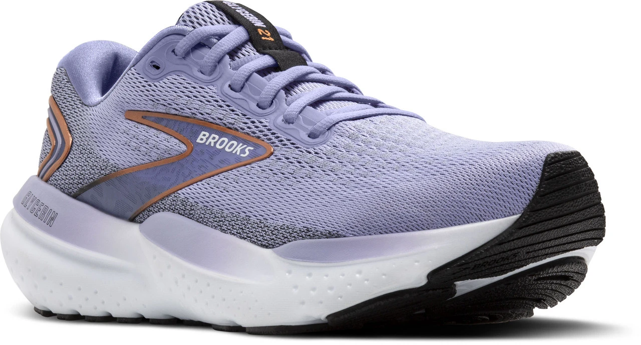 Englin’s Fine Footwear presents the women’s ‘Glycerin 21’ from Brooks. Enjoy supreme softness and ultimate comfort from your first step. The neutral Glycerin 21 women’s running shoe provides a plush ride thanks to more DNA LOFT v3 cushioning than before plus a new, more streamlined upper that delivers structure and breathability.