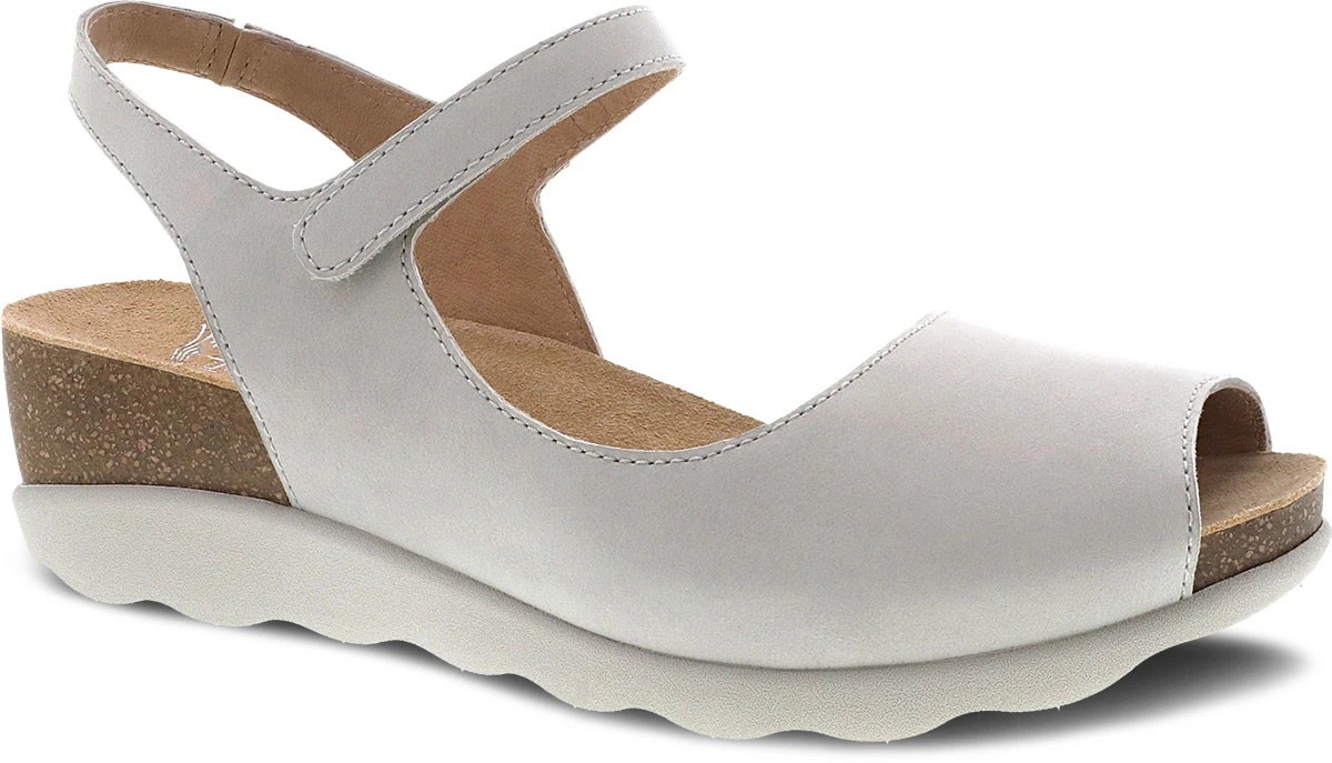 Englin’s Fine Footwear presents the women’s ‘Marcy’ from Dansko. Open up your Spring wardrobe with the Marcy Wedge sandal in Pewter Metallic. The perfect option to wear to work and out on the town, this sandal features an open toe and fully adjustable ankle strap with hook and loop closure. This lightweight sandal is made with metallic leather uppers, a comfortable EVA/Cork footbed, and a lightweight EVA outsole for comfort and long-lasting wear.