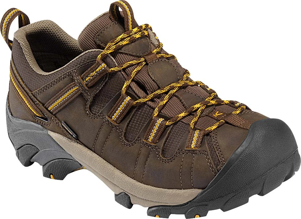Englin’s Fine Footwear presents the men’s ‘Targhee II’ from Keen. The Targhee II hiker from KEEN is ready for your off-road challenges. The KEEN.Dry membrane creates a waterproof seal. A removable metatomical footbed quickly molds to your foot’s shape for personalized comfort. Breathable and durable, the leather and mesh upper lets you meet challenges with confidence.