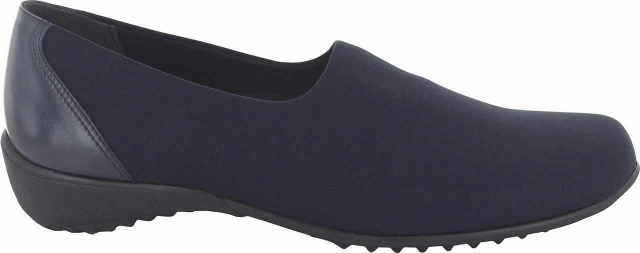 The Traveler features Munro’s exclusive Tech Sole, which is flexible, lightweight, durable, shock-absorbent, and treaded for exceptional traction. Also boasting a steel shank for support and stability, the Munro Traveler is ideal for all-day wear. The soft leather and stretch fabric upper conforms to your foot for a personalized fit every time and has no irritating seams to rub your skin. The knit lining of the Traveler is moisture wicking to keep your foot cozy and dry, and the footbed is removable to accommodate custom orthotics. The sleek design and low wedge heel of the Traveler make it a versatile fashion piece, a complement to jeans, slacks, skirts, and more. Like all Munro shoes, the Traveler is available in a matchless range of sizes and widths, so you can always find your perfect fit.