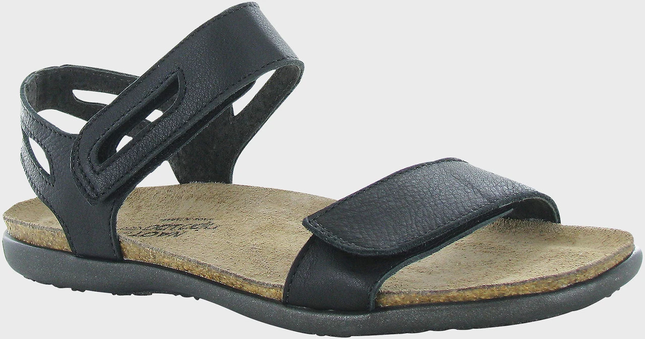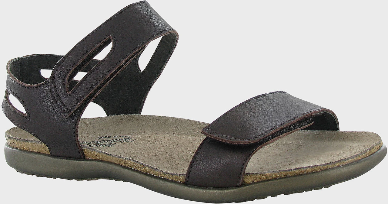 Englin’s Fine Footwear presents the women’s ‘Courtney’ from Naot. The Courtney is a classic flat sandal with beautiful cutouts that can see you through the warmer weather months. Naot’s anatomic cork & latex footbed is wrapped in a pampering suede and molds to the shape of the foot with wear. The Flat Elegant Collection features a .75″ TPR sole. The Courtney has double hook and loop closures for easy on/off.
