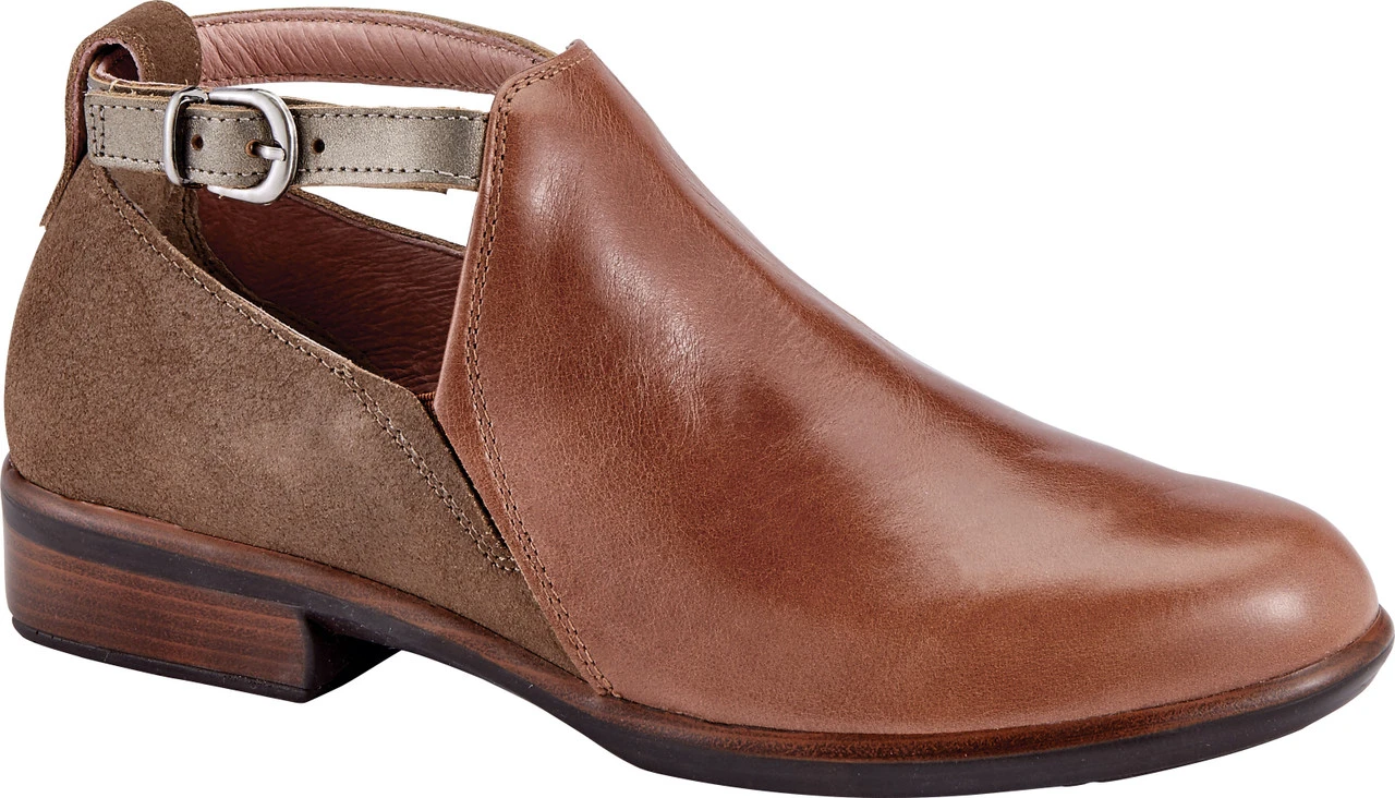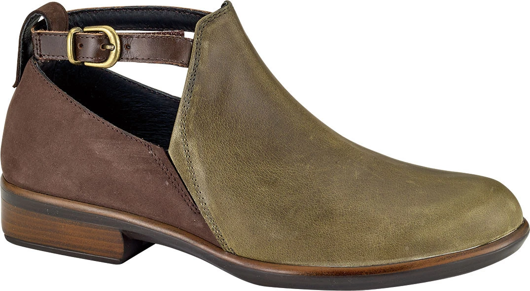 Englin’s Fine Footwear presents the women’s ‘Kamsin’ from Naot. With its rich, contrasting colors, the Kasmin has a special fall feel. The Kasmin’s simple yet elegant design of a bootie with an upper strap ensures you look fashionable and feel comfortable at any occasion. The Kasmin contains Naot’s removable, anatomic cork & latex footbed is wrapped in microfiber & leather and molds to the shape of the foot with wear. The Aura Collection features a 1.5″ polyurethane sole with a metal shank which is extremely lightweight, durable & abrasive to prevent slipping. This collection uses a hand-sewn stroble construction making it strong and extremely flexible.