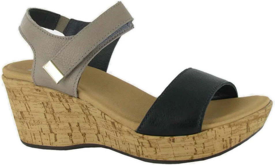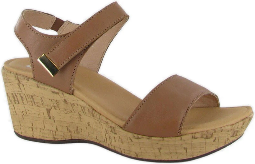 Englin’s Fine Footwear presents the women’s ‘Summer’ from Naot. Elevate your style with Naot Summer and its extra comfy, bold platform wedge sandal. It offers a hook & loop strap that provide adjustability. Naot’s anatomic cork & latex footbed is wrapped in pampering suede and molds to the shape of the foot with wear. The Resort Collection features a TPR sole, it offers the look of a 2.75 inch wedge without the feel.