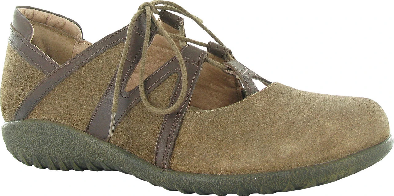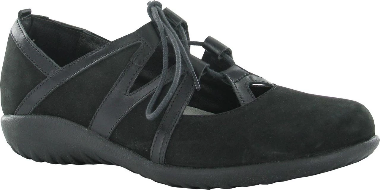 Englin’s Fine Footwear presents the women’s ‘Timu’ from Naot. The Naot Timu is a feminine maryjane with laces. The front portion of the Timu features padded technical lining which provides comfort and absorbs moisture. This style also features a padded heel cup and a padded upper for extra comfort. Naot’s removable, anatomic cork & latex footbed is wrapped in pampering suede and molds to the shape of the foot with wear. The Koru Collection features a 1″ polyurethane sole which is extremely lightweight, durable & slip resistant. This collection uses a hand-sewn stroble construction making it strong and extremely flexible.