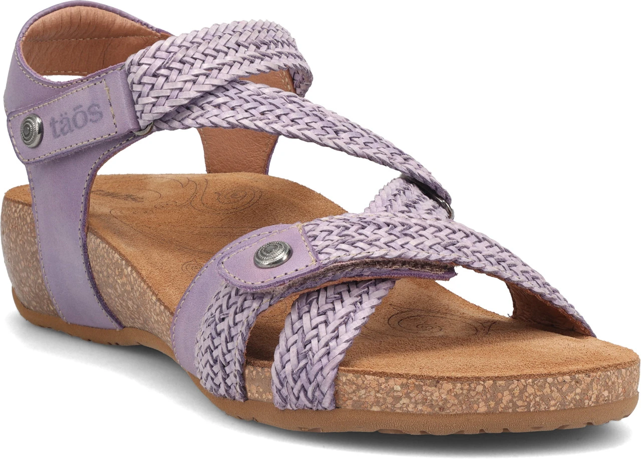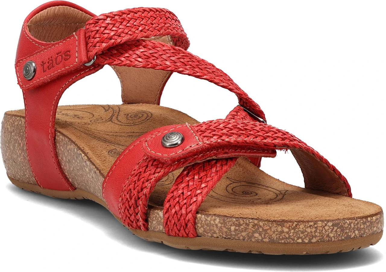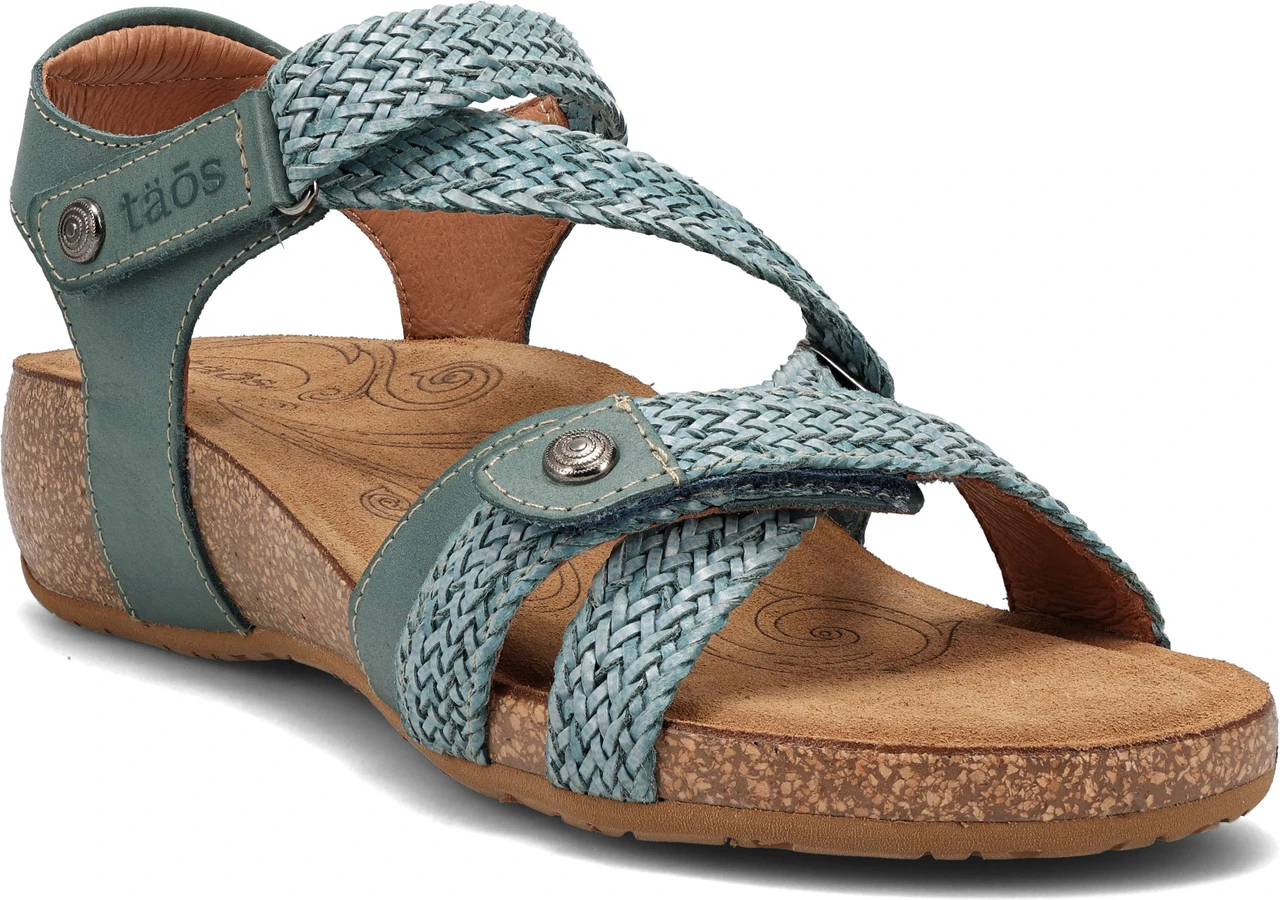 Englin’s Fine Footwear presents the women’s ‘Trulie’ from Taos. A truly scrumptious leather sandal made in Spain. Trulie comes in the colors of the Spanish sea, sky and earth. Man made woven hook and loop straps provide a custom feeling fit. Incredible comfort comes from the lightweight, padded, contour cork-polyurethane footbed lined in suede.