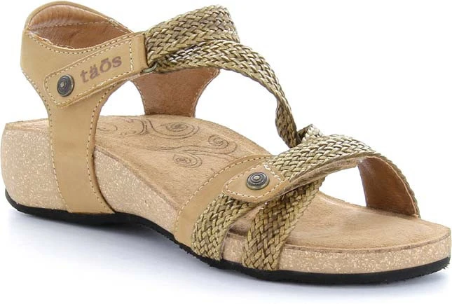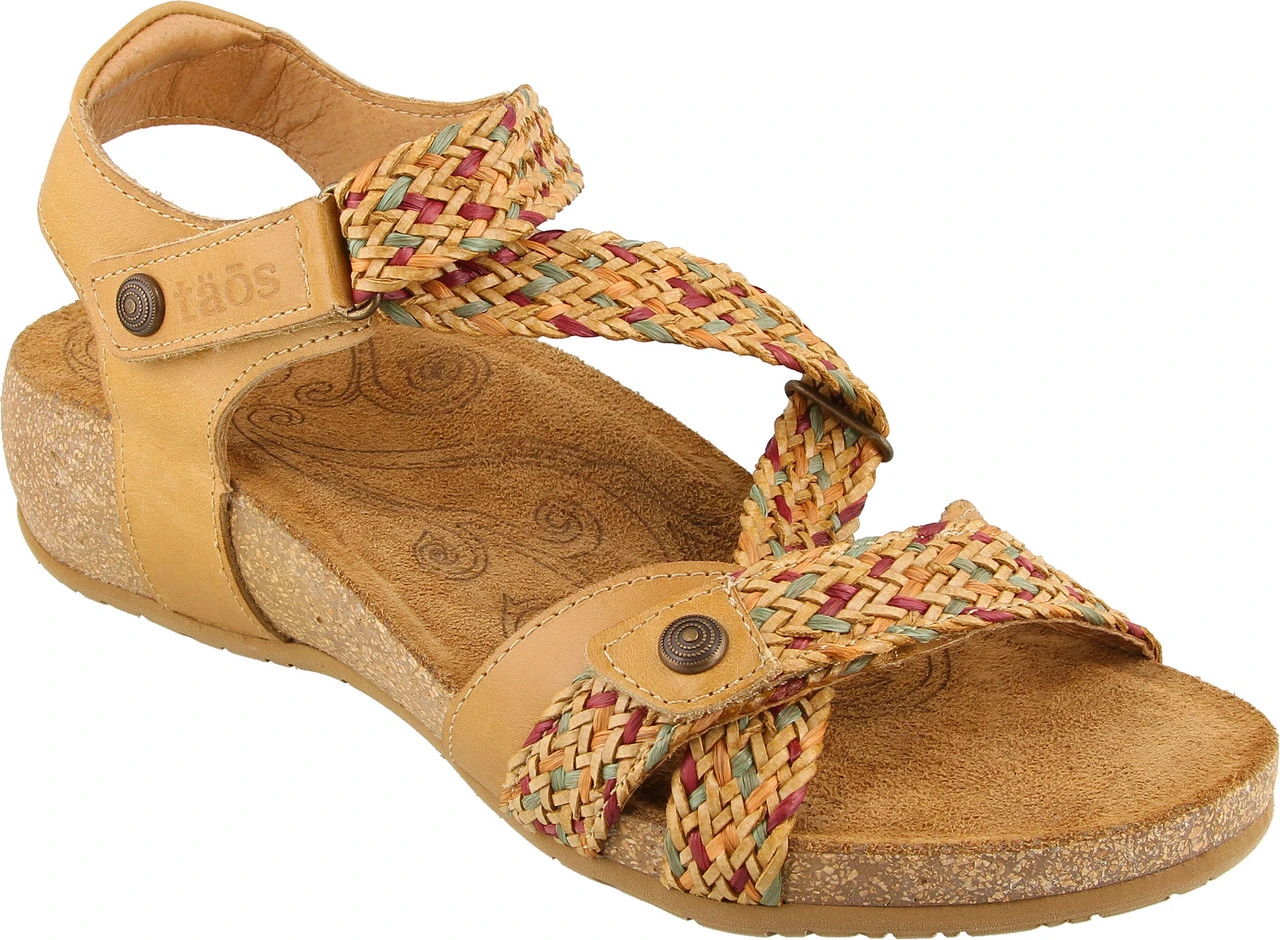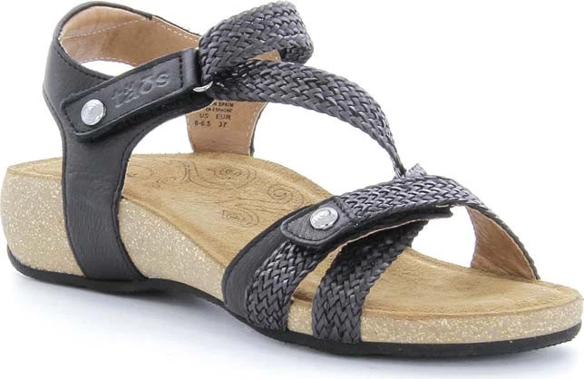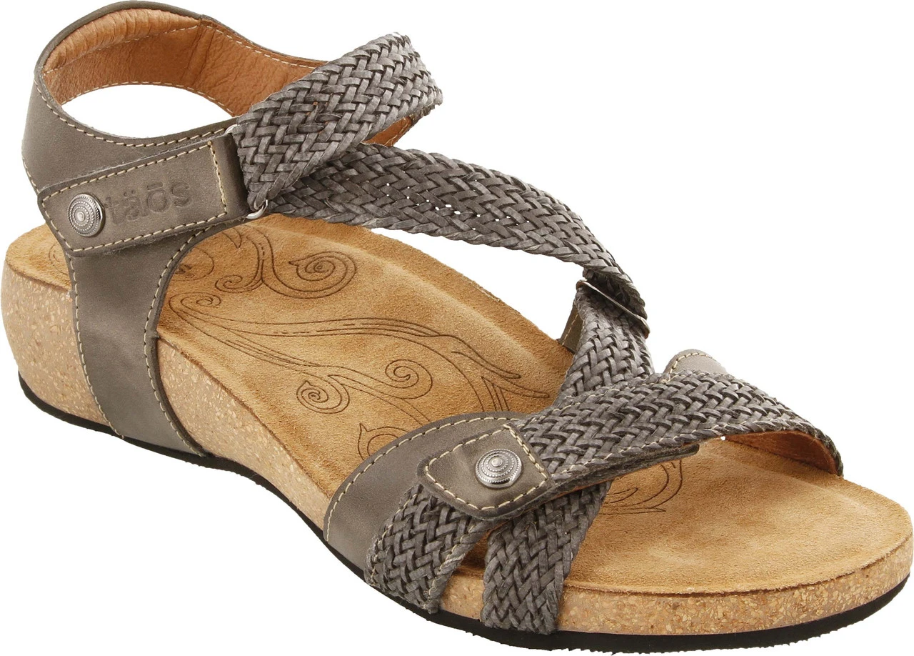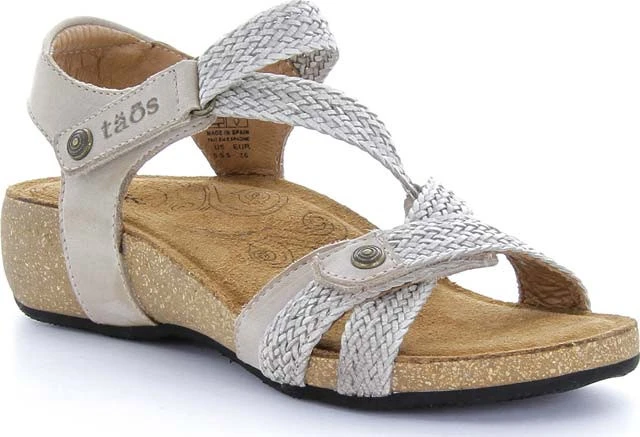 Englin’s Fine Footwear presents the women’s ‘Trulie’ from Taos. A truly scrumptious leather sandal made in Spain. Trulie comes in the colors of the Spanish sea, sky and earth. Man made woven hook and loop straps provide a custom feeling fit. Incredible comfort comes from the lightweight, padded, contour cork-polyurethane footbed lined in suede.