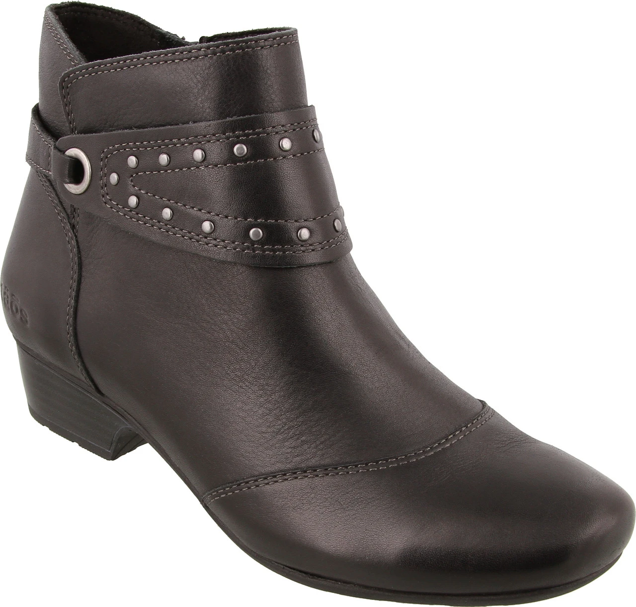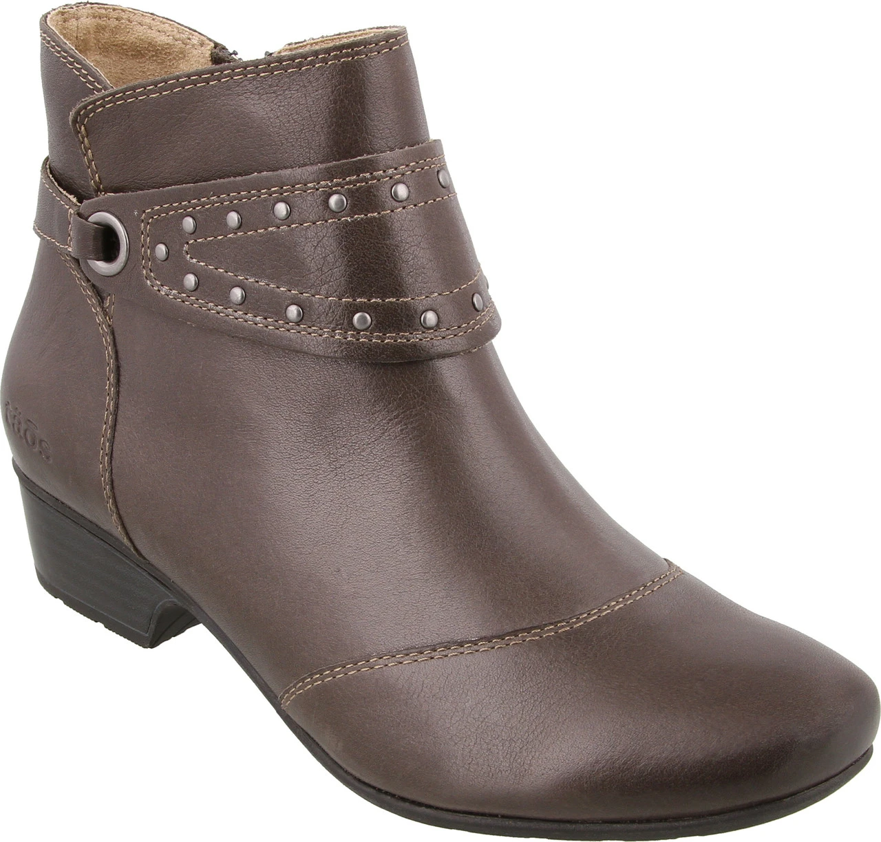 Englin’s Fine Footwear presents the women’s ‘Ultimo’ from Taos. Ultimo features an inside zipper for easy access along with a decorative strap and metal studs. Taos Curves & Pods® removable footbed as well as arch and metatarsal support give your feet comfort without sacrificing style. Each step with the perfect heel height is a comfortable step, especially with Taos flexible and durable rubber outsole. Featuring premium microfiber lining and quality leather upper material.