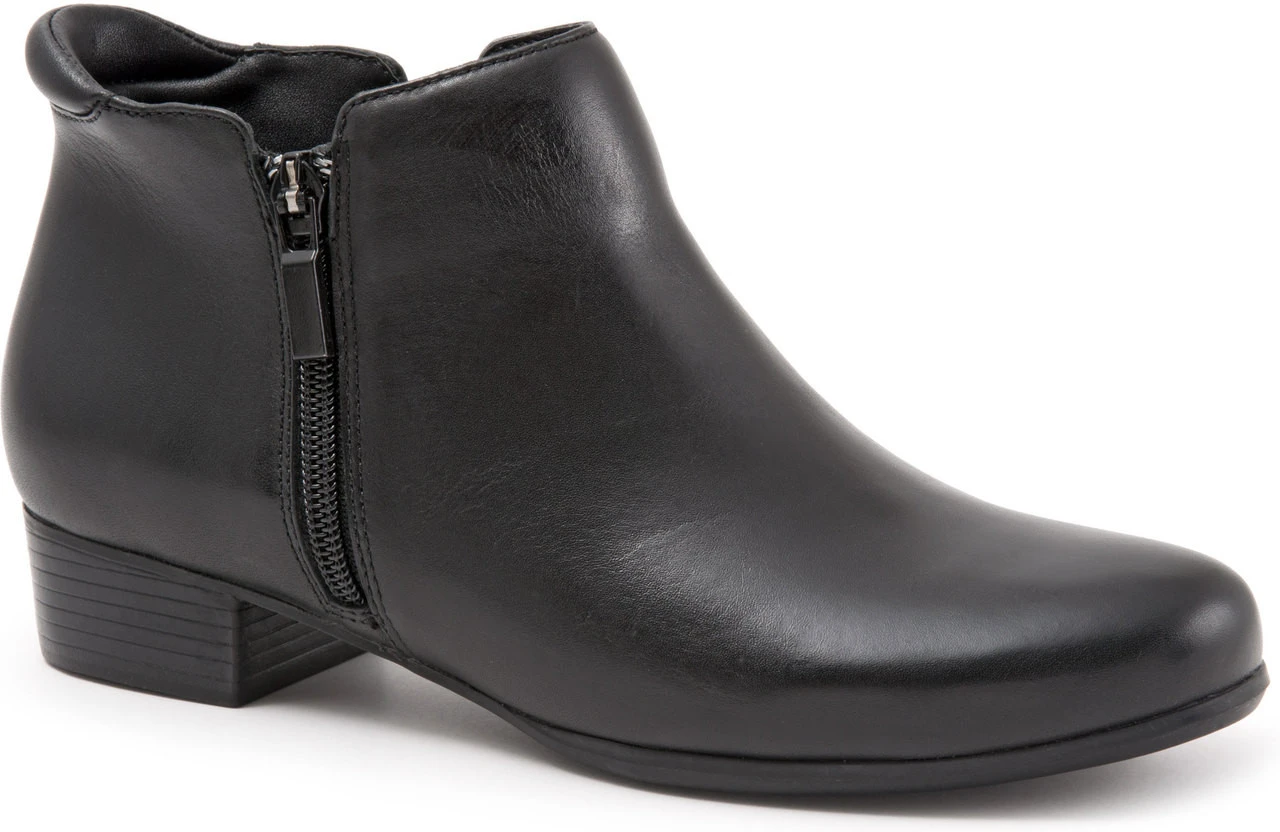 Englin’s Fine Footwear presents the women’s ‘Major’ from Trotters. The Major has cosmopolitan style with its dual zippers and elegant shape. Soft lining and a padded heel collar keep you comfortable on the go. The soft lined footbed has great arch support and is removable for people who prefer to use orthotics.